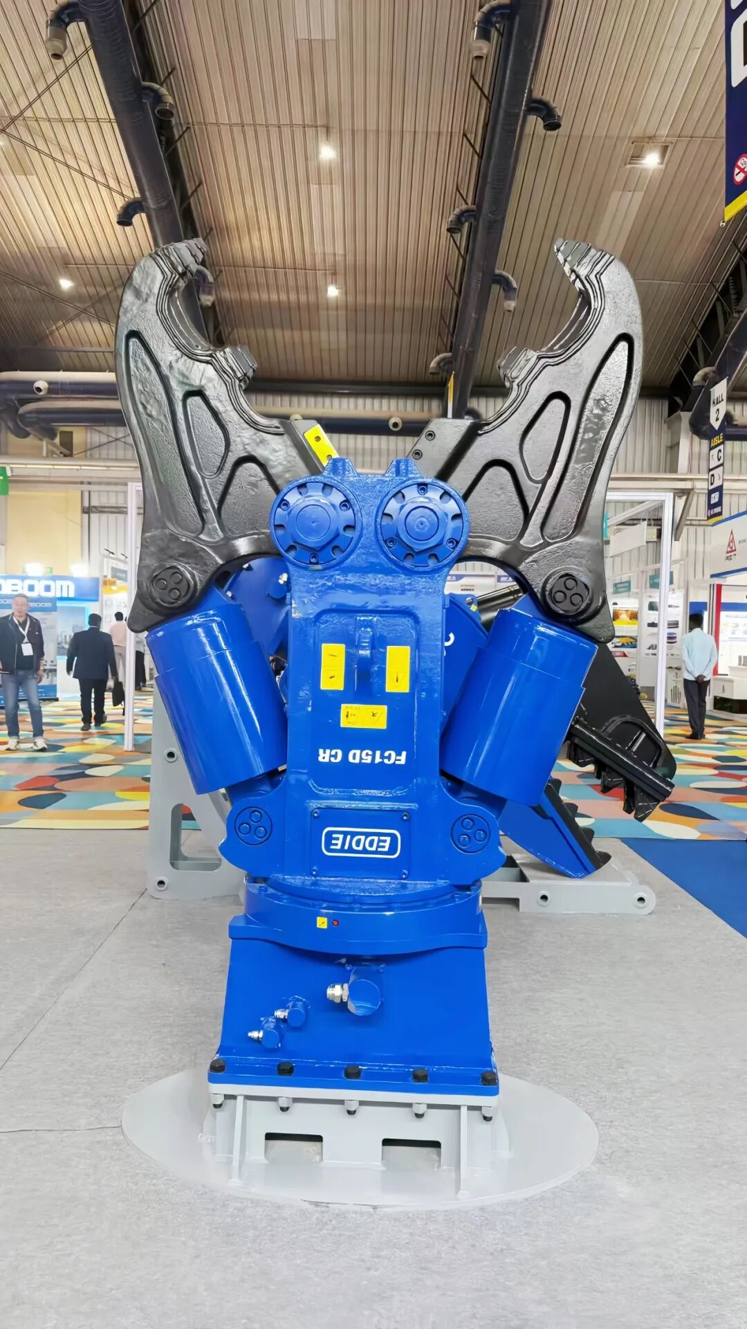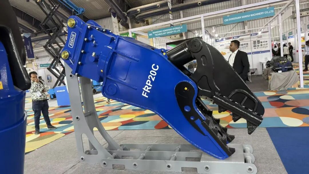 液压剪、回转式粉碎钳、快速链接器等液压属具产品集中展出,深度践行“节能、耐用、多功能”的设计理念。其中,FRP20C旋转式粉碎钳亮点突出:采用大流量增速阀设计,可显著提升开合效率,同时有效消除压力峰值,延长液压系统使用寿命,具备强度高、耐高压、抗划伤等优势,可从容应对复杂破碎作业场景。